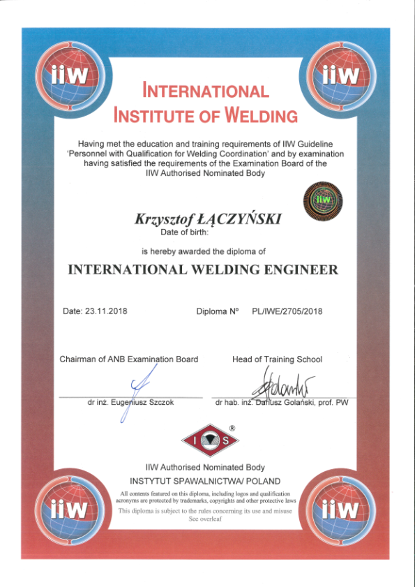 Jestem absolwentem Politechniki Warszawskiej. Uzyskałem tytuł inżyniera na kierunku Mechanika i Budowa Maszyn. Pierwsze kroki jako inżynier stawiałem obejmując stanowisko Technologa w zakładzie produkcyjnym. Pomimo wielu procesów produkcyjnych z jakimi miałem styczność to proces spawania najbardziej mnie zaabsorbował i pochłonął w całości. Analogicznie kolejnym krokiem były studia i zdobycie Kompetencji Międzynarodowego Inżyniera Spawalnika (IWE).