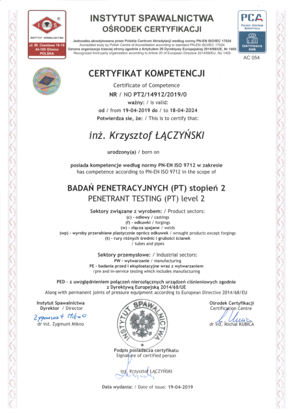 Przez lata swojej pracy mogłem uczestniczyć w realizacji wielu dużych projektów dla zagranicznych kontrahentów. Z początku na stanowisku Inżyniera Spawalnika i Kontrolera Jakości, w kolejnym etapie już jako Główny Spawalnik i Kierownik Działu Kontroli Jakości. Pozwoliło mi to zdobyć zarówno wiedzę praktyczną jak i merytoryczną.